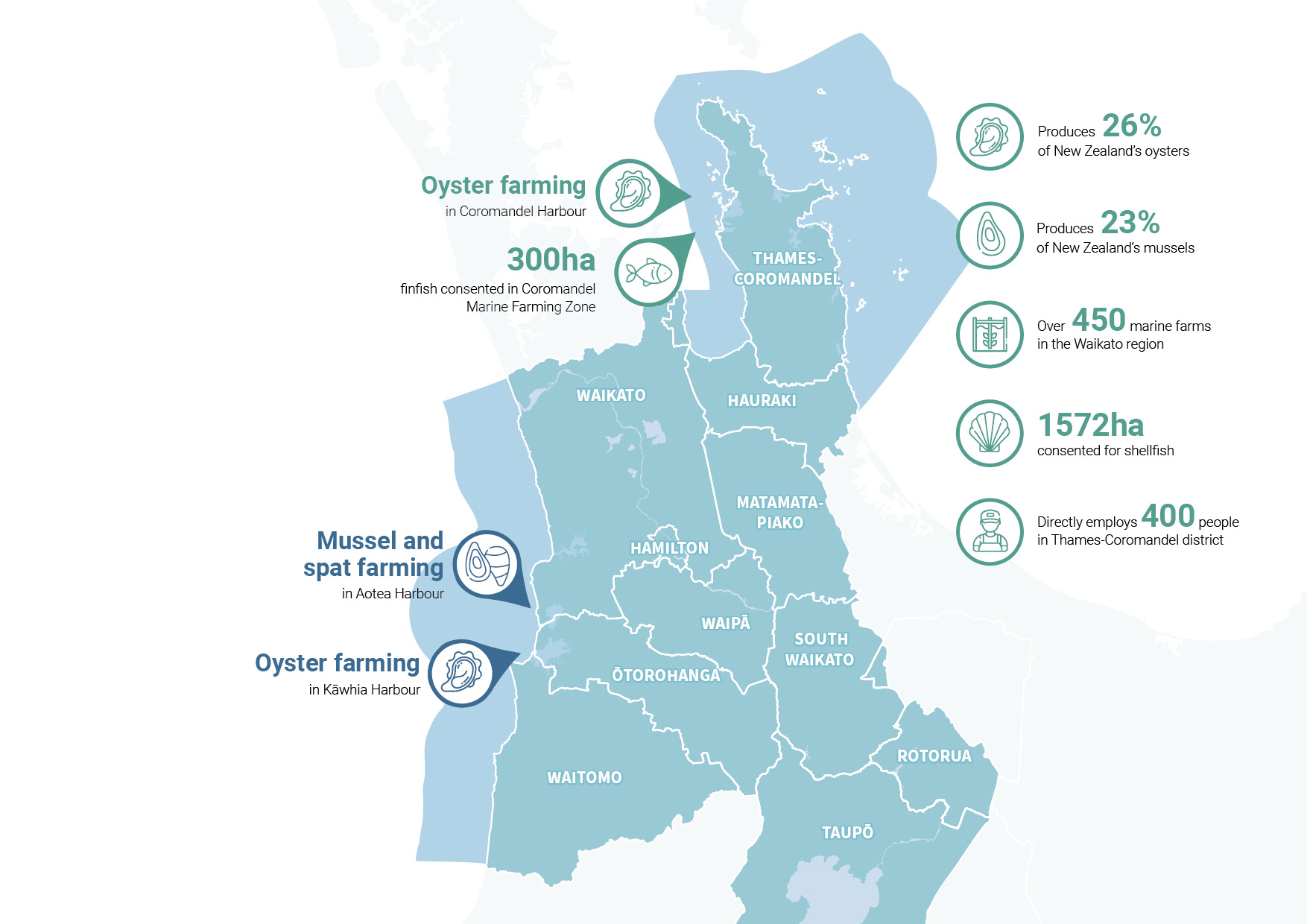 Greenshell mussels continue to be the region’s primary aquaculture product with 25,000 tonnes produced per year, followed by Pacific oysters with 500 tonnes. But with a coastal and marine environment making up a third of the region, there is opportunity to further grow and develop our ‘blue economy’.